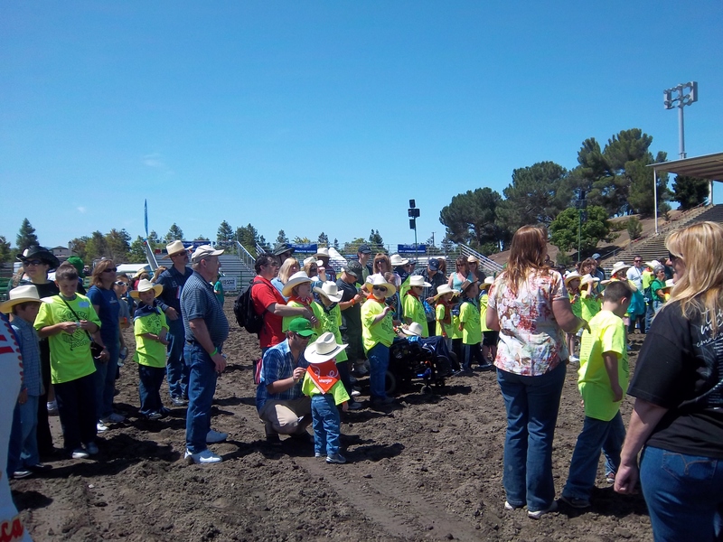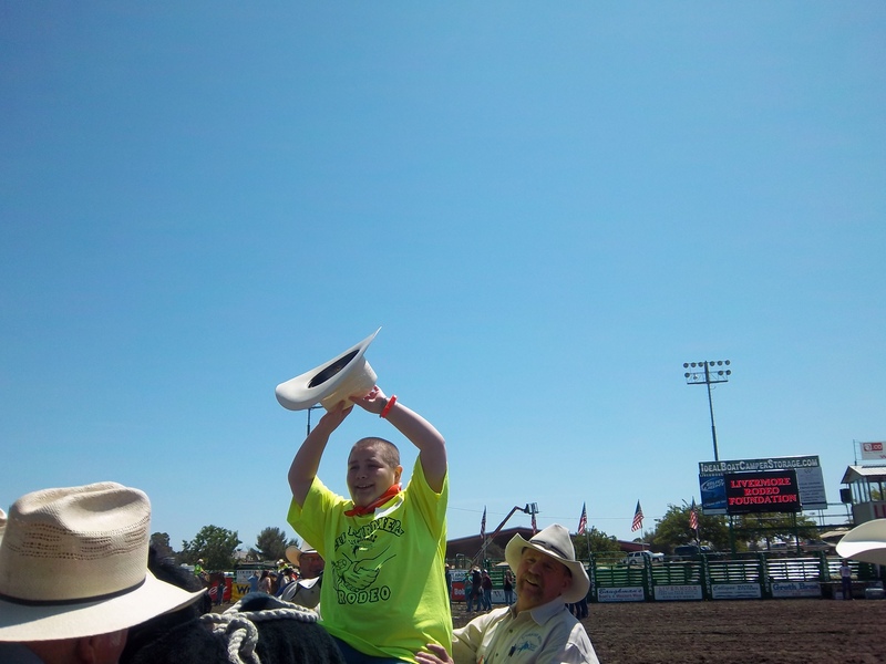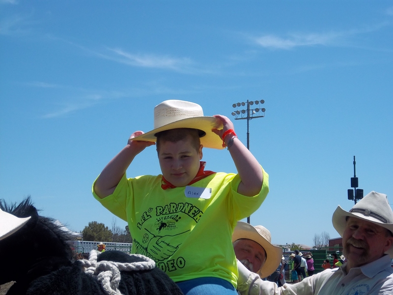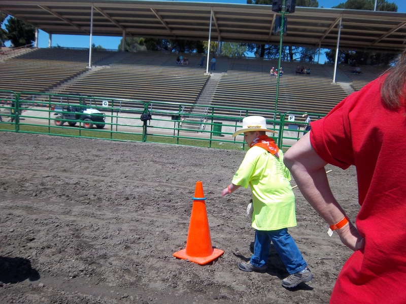 (Posted 6/12/2011) Taken 6/12/2011. Alex at the Lil' Partners Rodeo event. This is a morning for the local special needs kids to show them how to rope steer, ride a bronco, run the barrels, and ride a real horse. It takes place in the rodeo arena on Sunday morning, and then the real rodeo runs in the afternoon. Alex's rodeo partner this year was rodeo queen Missi Elliott. More info is here.