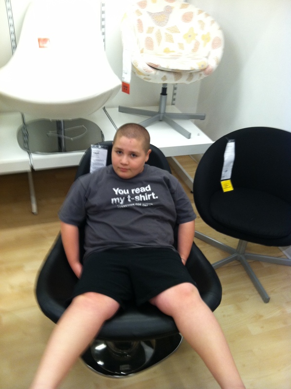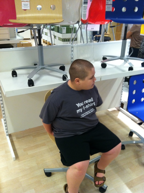 (Posted 7/3/2011) Taken 7/2/2011. Alex test driving new chairs at Ikea.