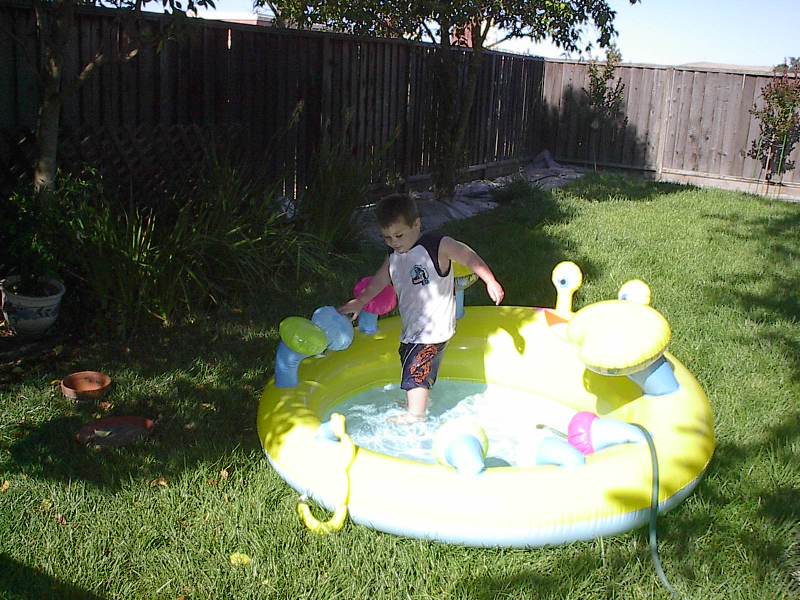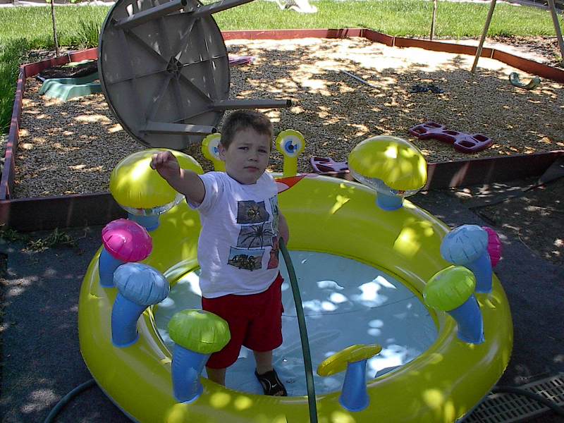 (Posted 8/29/05) Taken 6/7/05. Alex playing in his new inflatable backyard pool.