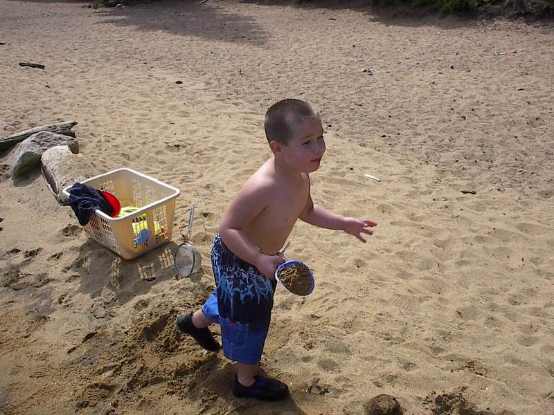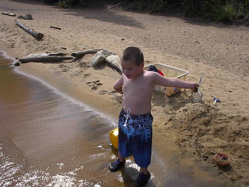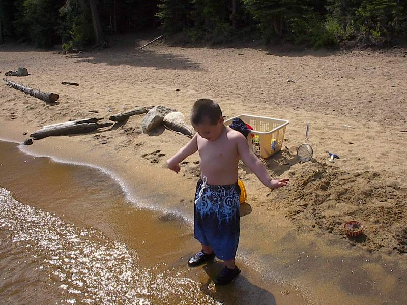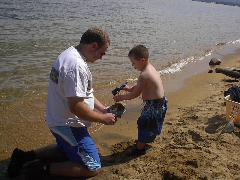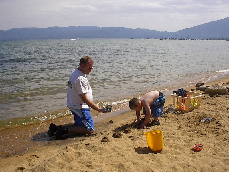 (Posted 8/29/05) Taken 8/14/05. Our first vacation to Jeff's grandparents' cabin in South Lake Tahoe. First exhausted from the road trip. Then having fun at the beach. Finally helping da-da make mud pies.