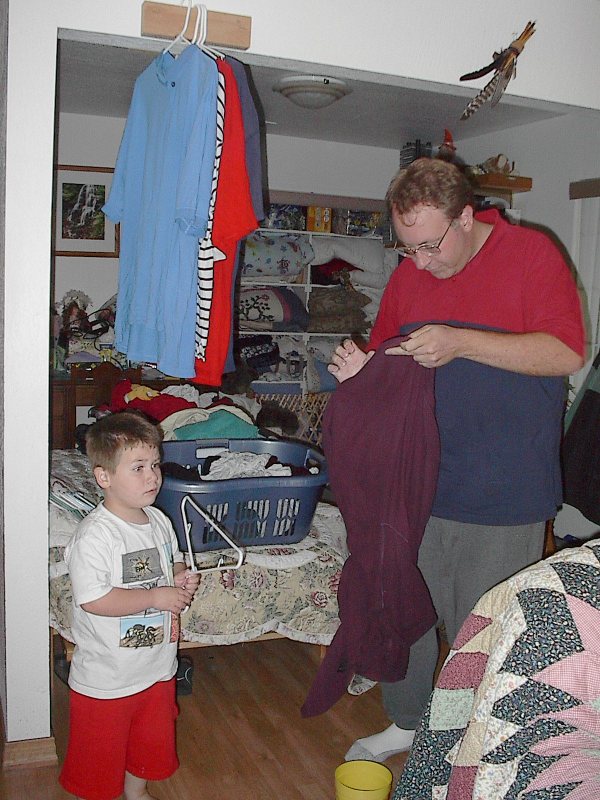 (Posted 8/29/05) Taken 6/7/05. Alex helping da-da hang shirts.