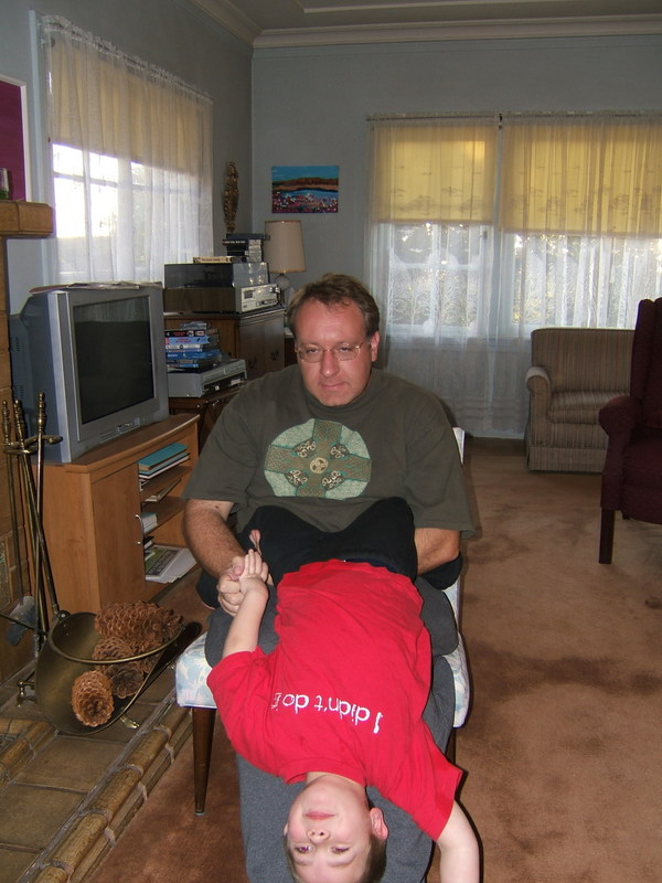 (Posted 3/15/06) Taken Dec 14, 2005. Alex trying out an early Christmas present on a rainy Livermore day.