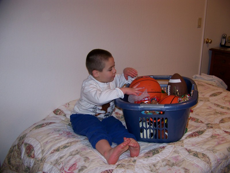 (Posted 1/27/08) Taken 12/24/2006. Alex playing with his stash of toys.