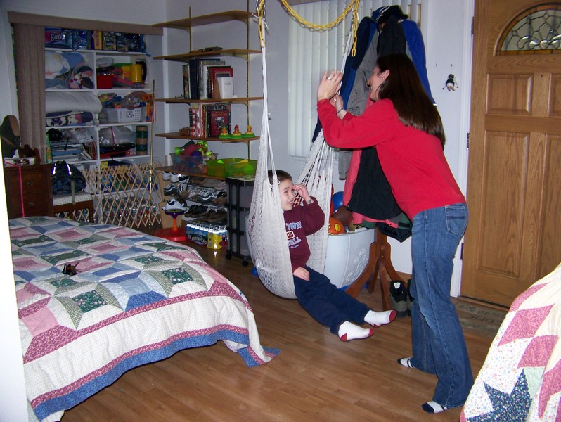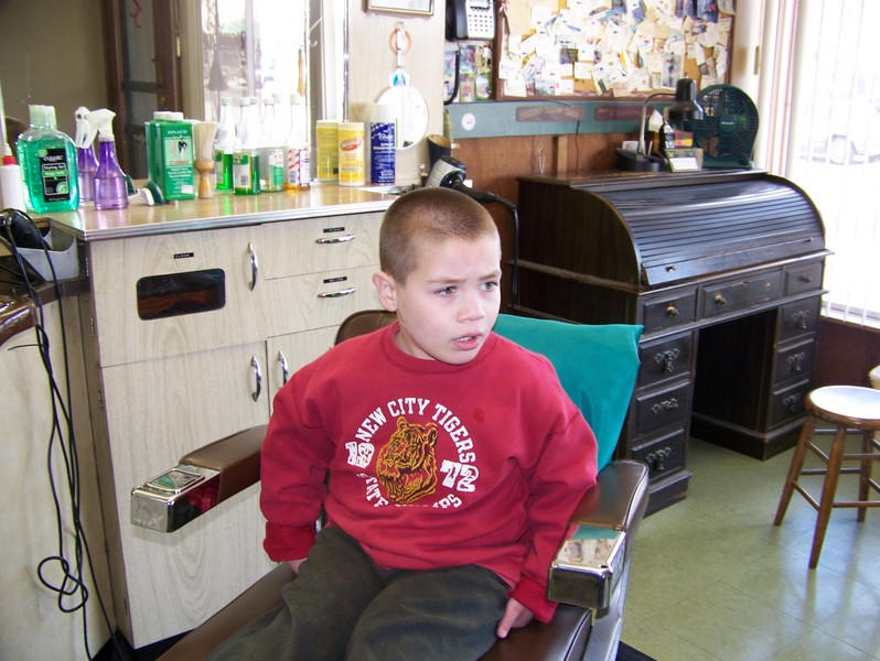 (Posted 1/27/08) Taken 2/23/2007 & 3/10/2007. Alex in line for his last haircut at the barber shop before it closed for good. Alex playing on his indoor swing.