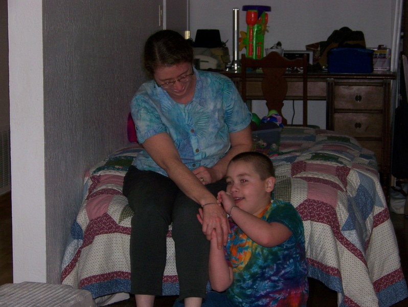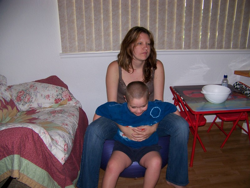 (Posted 1/27/08) Taken 2/15/2007, 4/5/2007. Alex having fun with Angela, one of his therapists. Alex and his therapy team (Becci, Angela, and Crystal, Beth).