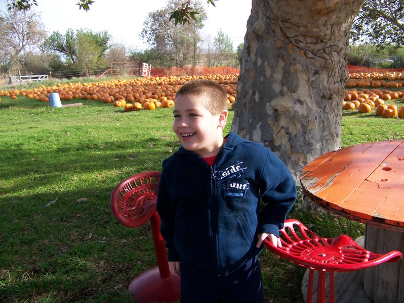 (Posted 1/27/08) Taken Taken 10/19/2007. Visiting the pumpkin patch with mama and dada.