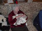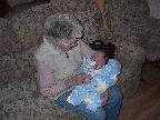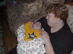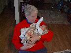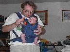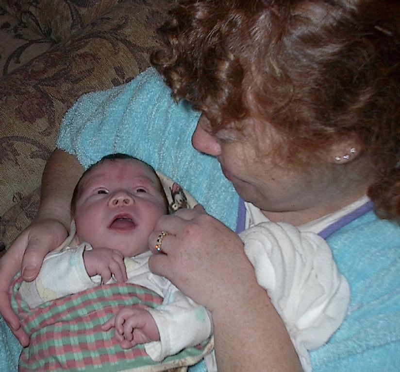 (Posted 2/6/02) Looking cute while snorking down the food. Meeting Lori's Grandma Tootie. Looking suspiciously at Jeff's mom after she gave him a bath. His hair lightens a shade every time we bathe him. It's looking more and more red, ala Lori. Fortunately, his eyes are still Jeff's shade of blue!