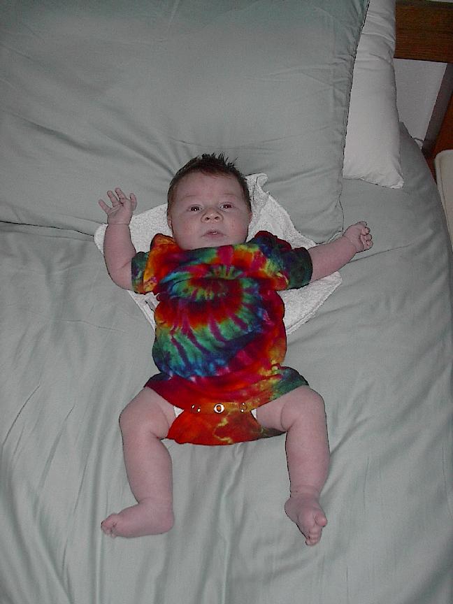 (Posted 3/9/02) Generally looking cute (Feb 9-22). (Tie dye outfit from Lori's mom)