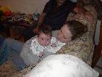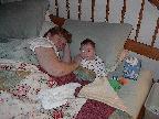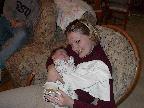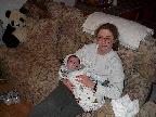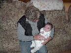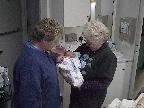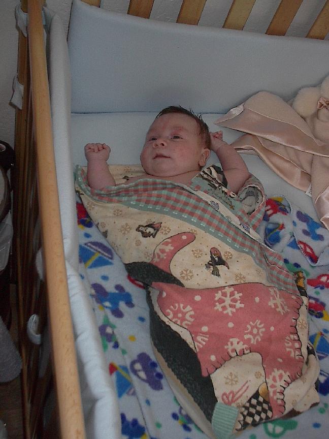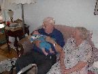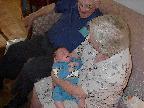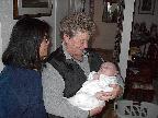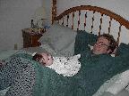 (Posted 1/31/02) Checking out dad in bed. Meeting Jeff's good friends Karl and Nora (Karl not pictured). Meeting Jeff's maternal grandparents, Bill and Thelma Takacs. (The little guy is named for Jeff's grandpa William.) Stretching for Lori's mom Margot and looking cute for Don, an old friend of Lori's family.