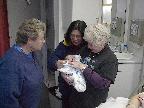His second day in this world. Visiting with Lori's mom Margot, her Aunt Karen, and Diane. Plus Lori's sister Julie and brother-in-law Eric (Eric not pictured).