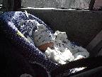 All bundled up to come home from the hospital.