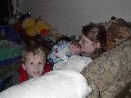 (Posted 3/9/02) Visiting with Lori's friends Joane and Sandi and Jeff's friend Karl. (Feb 16, 17) (Blankets by Lori's friends Sandi and Laurlee)