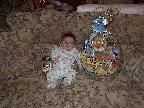 (Posted 4/8/02) Early couch potato training. Easter on my left, Passover on my right. Decisions, decisions....